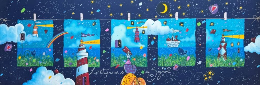 Quest’opera, parte della cartella “Segui la rotta del cuore”, è realizzata su carta. Le dimensioni sono 70×50 cm. La cornice non è inclusa, ma è consigliata una cornice artigianale bianca laccata o una cornice bianca laccata (dimensioni 50×50 cm, selezionabile nella sezione “CORNICI”).