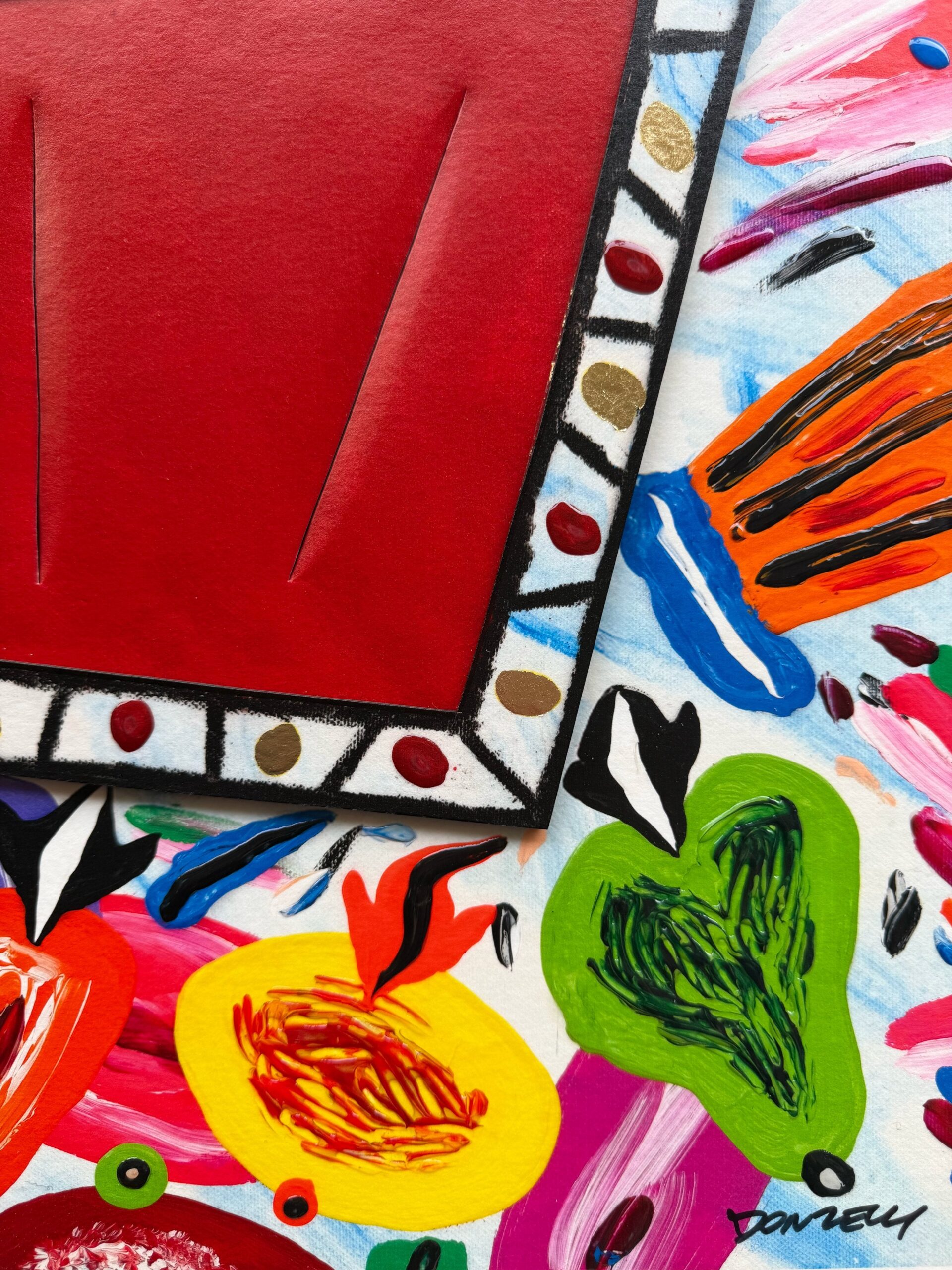 All’apice di una carriera ultradecennale, Donzelli rompe i confini della serigrafia tradizionale trasformandola in un linguaggio ibrido e potente. Le sue opere si animano attraverso rilievi materici, inserti di collage, stratificazioni di resine e interventi pittorici, dando vita a superfici vibranti, quasi scultoree.