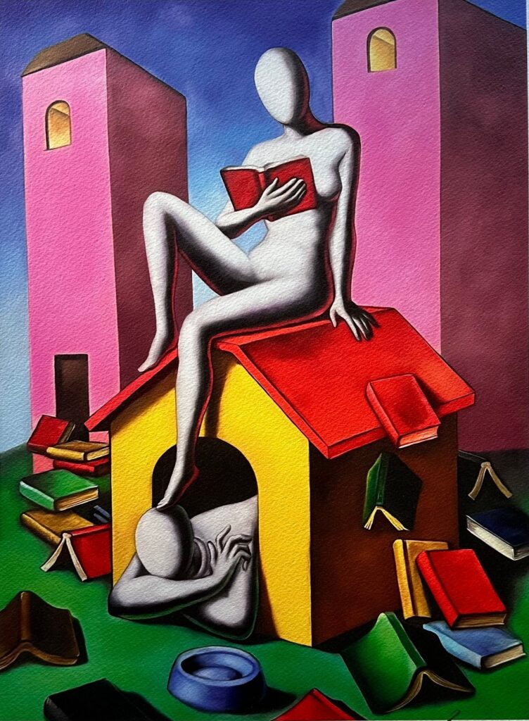 Mark Kostabi è un artista poliedrico e iconico, che coniuga arte visiva, musica e critica sociale. Le sue opere affrontano con ironia e profondità i disagi dell’uomo contemporaneo, mantenendo uno stile accessibile, riconoscibile e provocatorio.