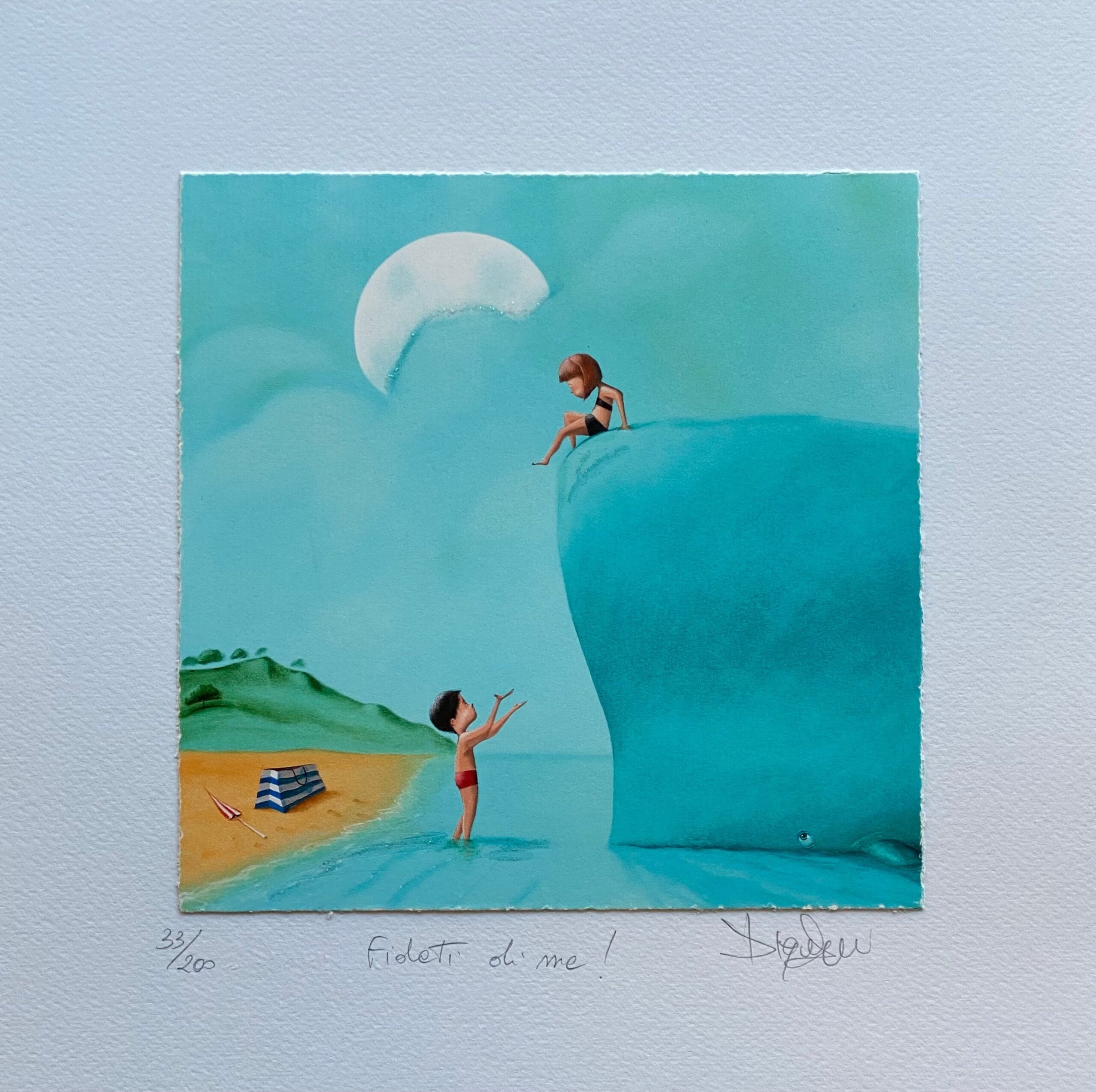 Scopri l’incanto di un’opera d’arte creata da un artista poliedrico come Diego Santini, le cui creazioni sono intrise di atmosfere vaghe e personaggi sognanti e, al tempo stesso, ironici. Con una base di 30 cm e un’altezza di 30 cm, questa Fine Art Giclée è realizzata su Carta, e si distingue per gli interventi in glitter che aggiungono un tocco di brillantezza unico.