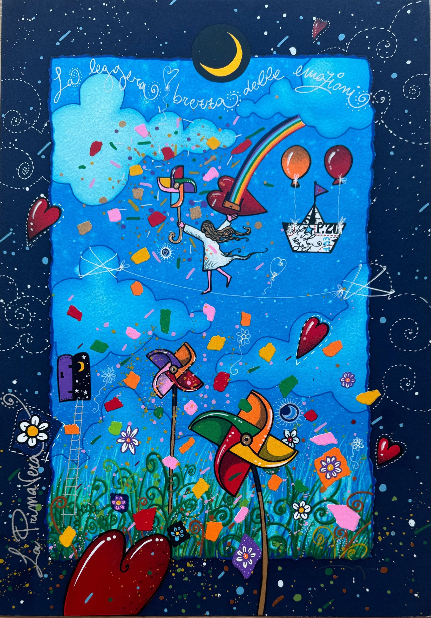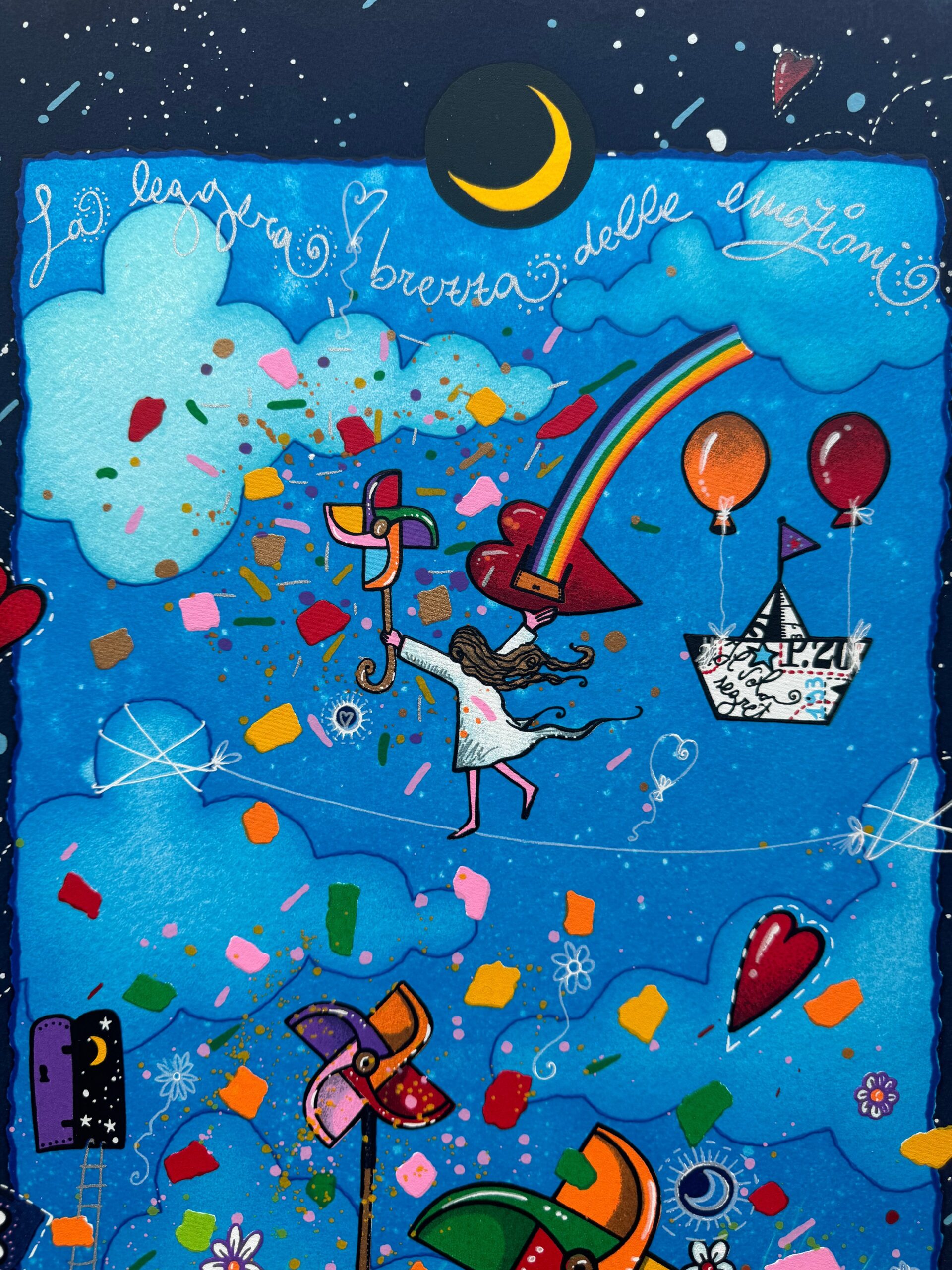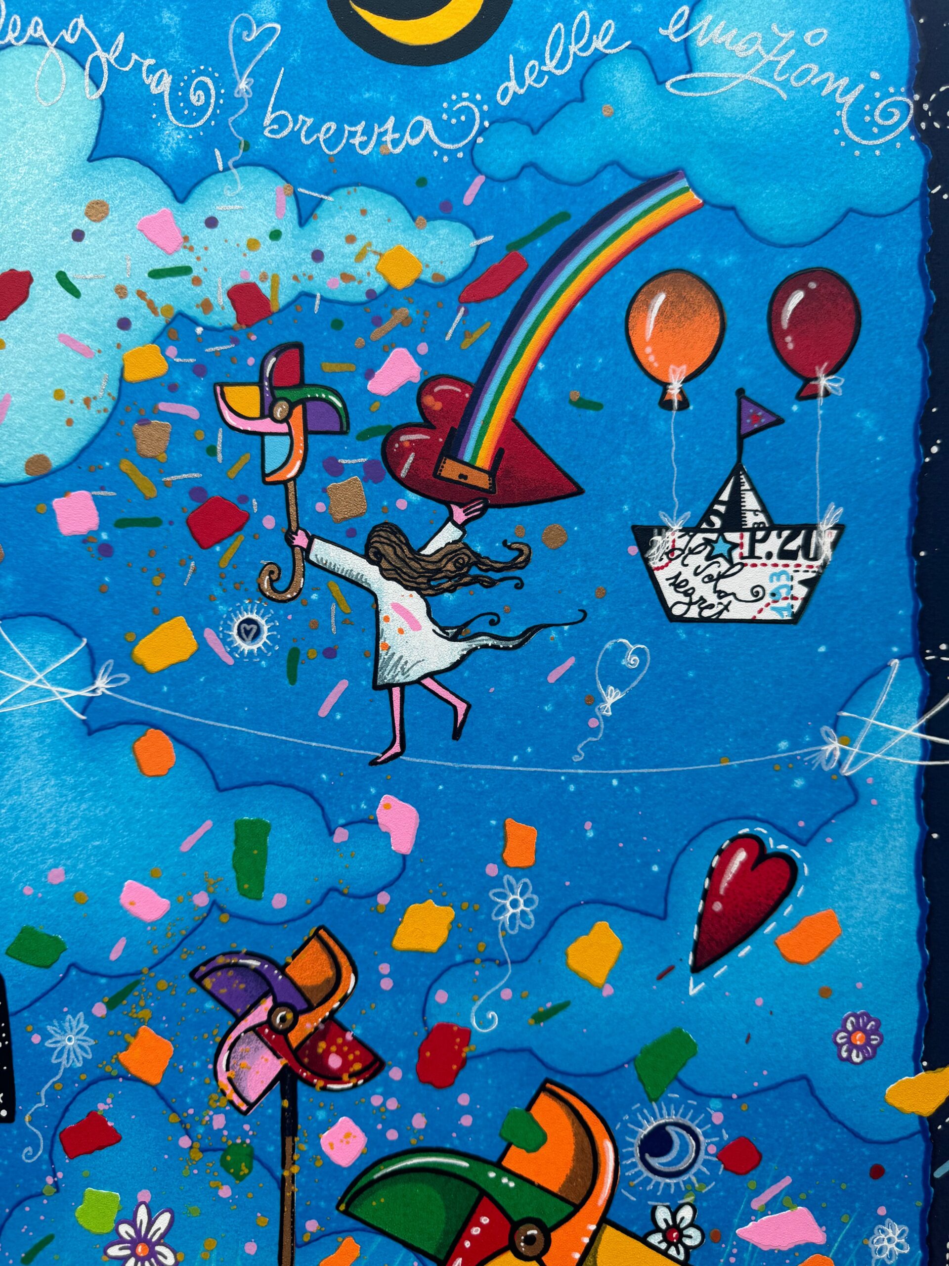 Questa serigrafia, parte della nuova cartella “Segui la rotta del cuore”, è un esempio della sua maestria, con dimensioni di 35×50 cm e realizzata su carta.