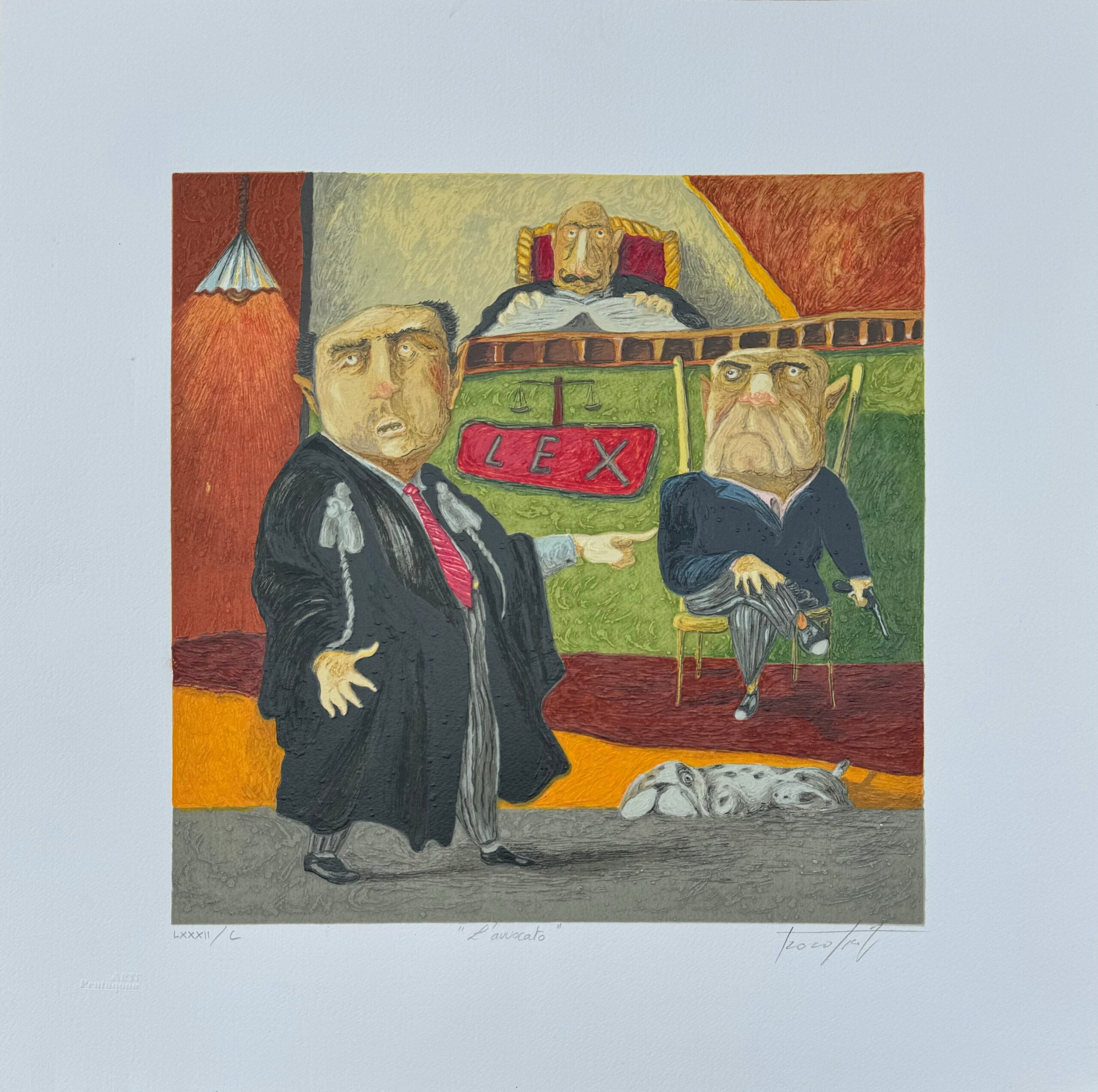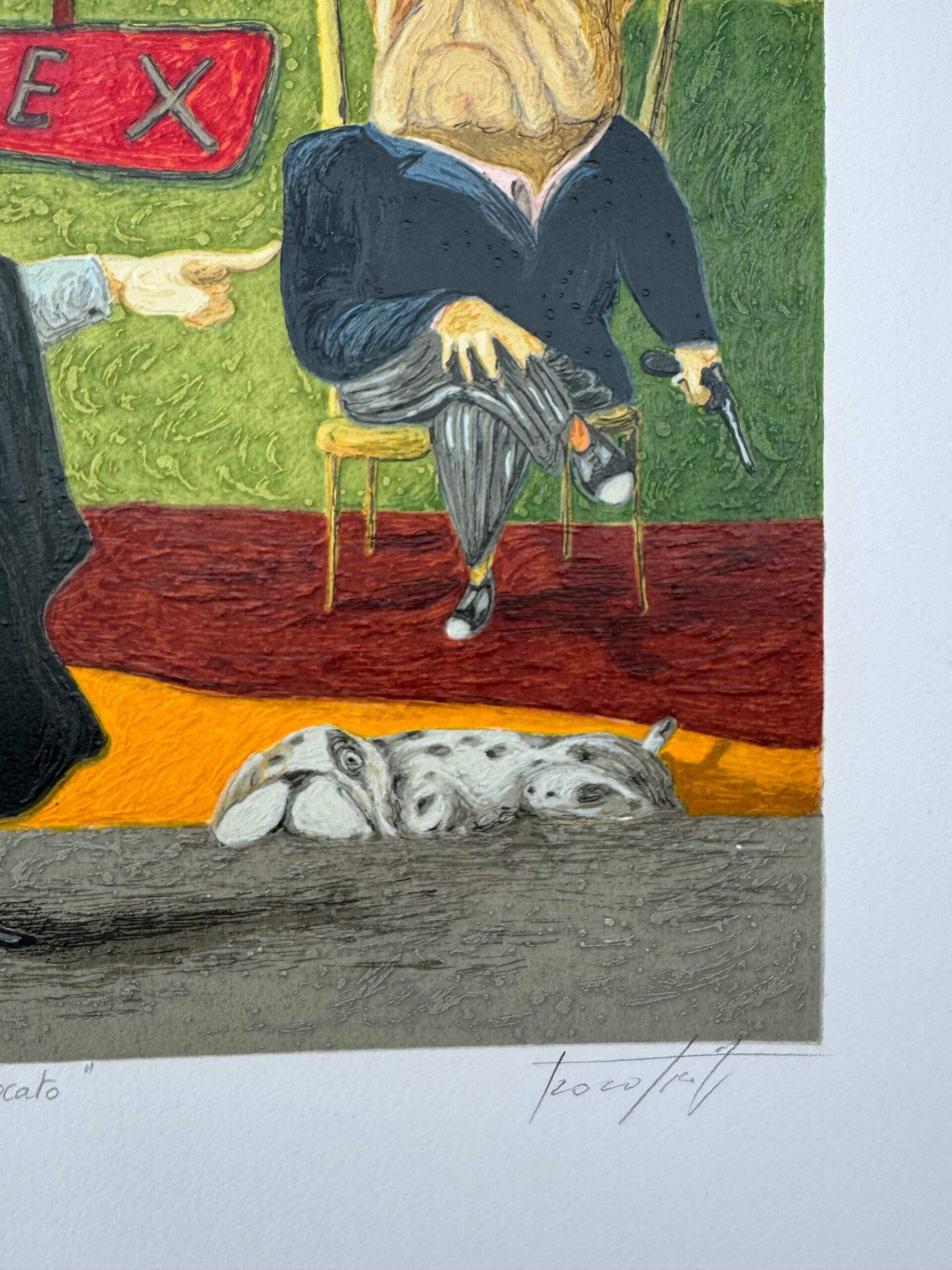 Scopri la vivace Serigrafia di Pino Procopio, un Multiplo in edizione limitata che cattura l’essenza ironica e pungente della società odierna.