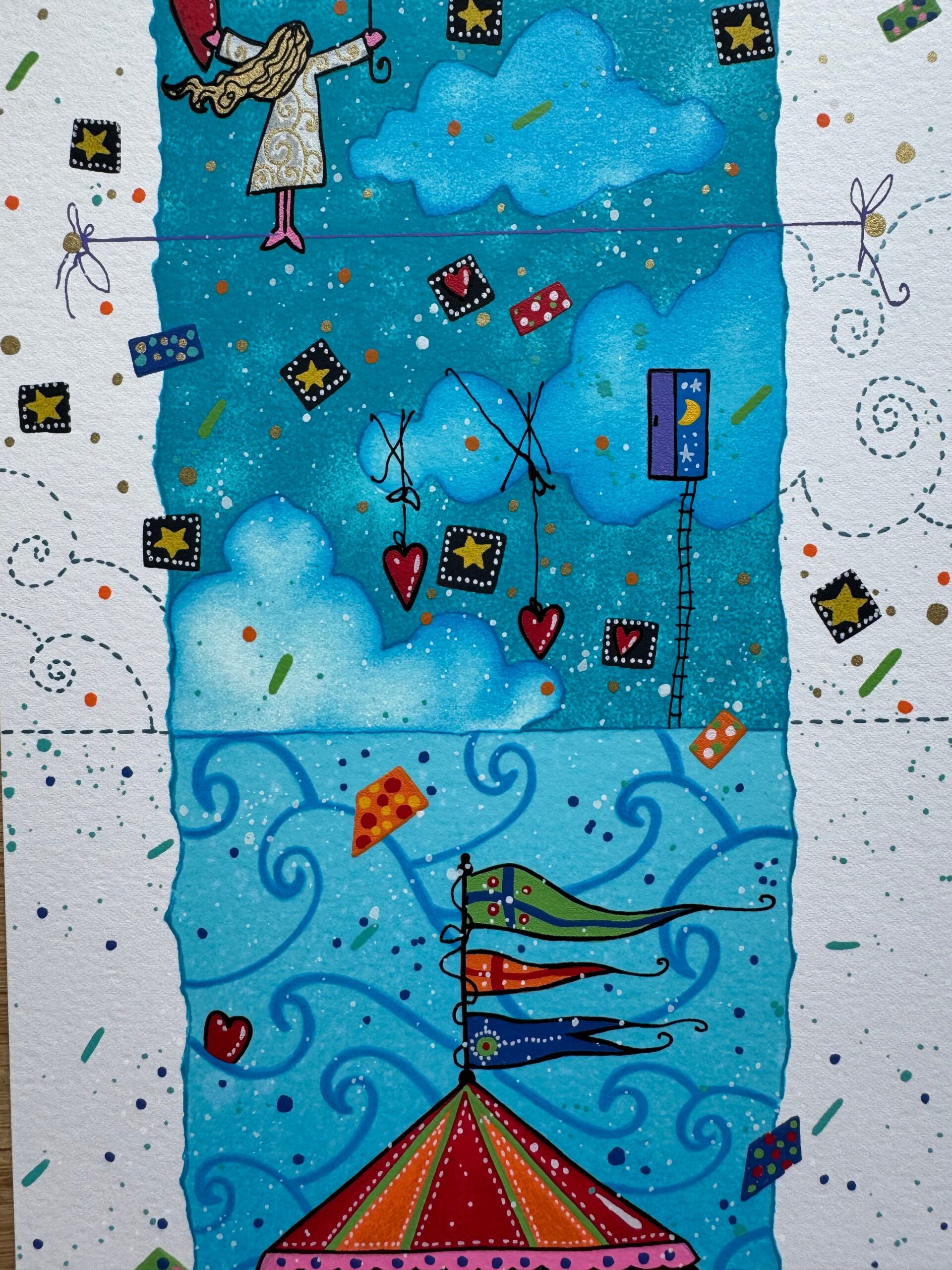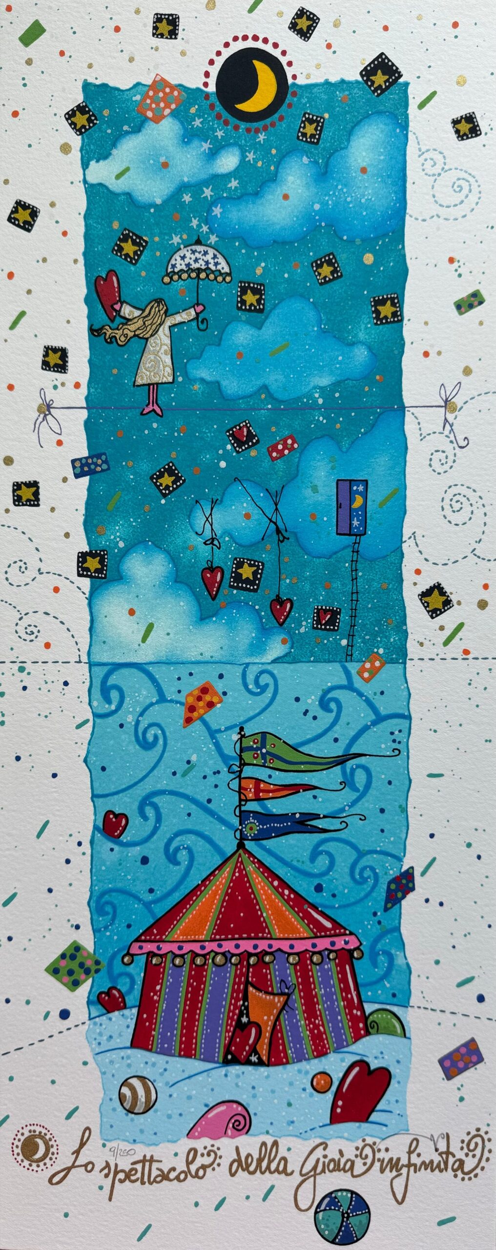 Quest’opera, proveniente dalla nuova cartella “Segui la rotta del cuore”, misura 20×50 cm e riflette la sapiente arte dell’artista, diplomato all’Istituto Statale d’Arte di Ancona.