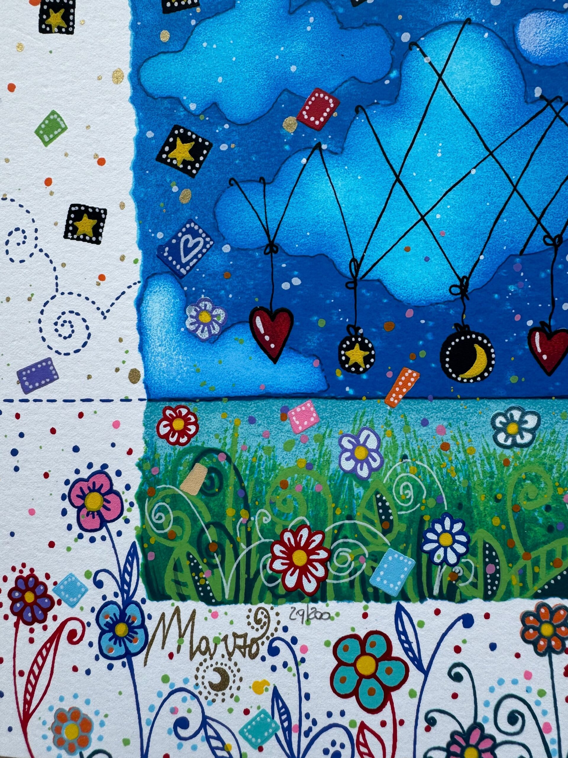 Questa serigrafia, parte della nuova cartella ‘Segui la rotta del cuore’, è un multiplo in edizione limitata stampato su carta, con dimensioni di 25×25 cm. Un’occasione per apprezzare l’arte in un formato versatile e prezioso.