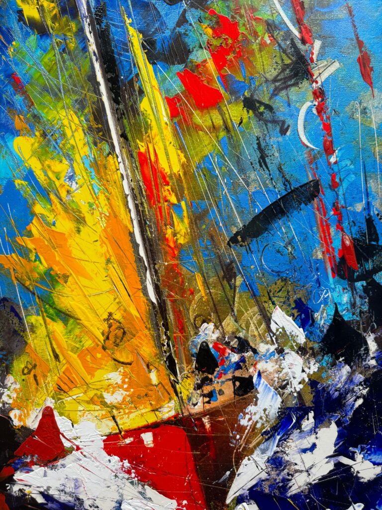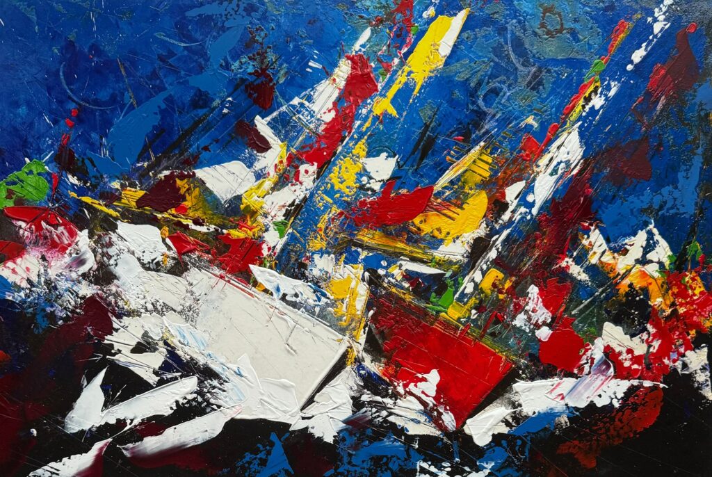 Match race è una serigrafia polimaterica di Francesco Toraldo che cattura la dinamicità dell’Espressionismo astratto americano, richiamando lo stile di Pollock e l’action painting.