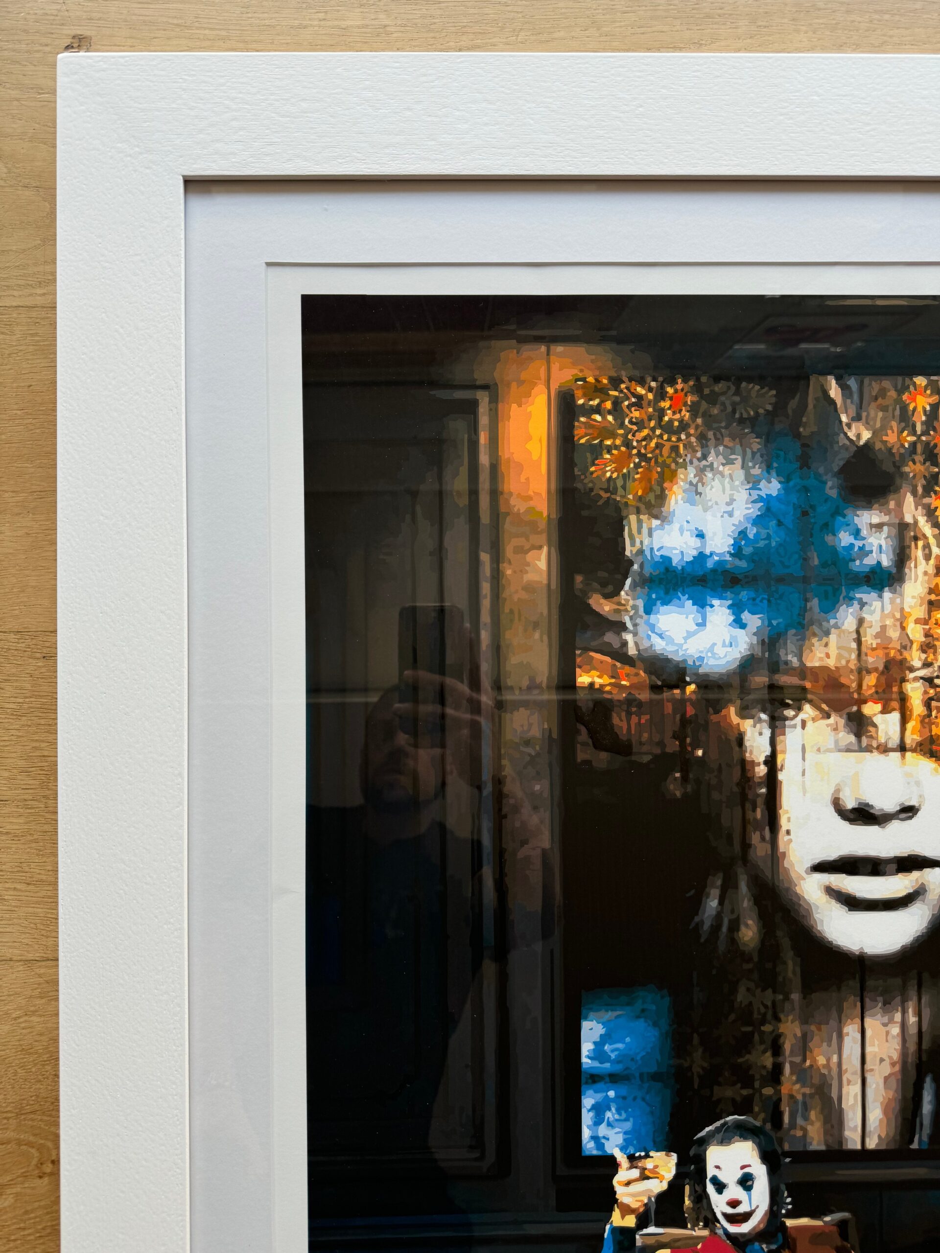 La cornice, dalla finitura geometrica ed estremamente semplice, esalta e arricchisce l’opera, essendo curata nei minimi dettagli e dotata di vetro.