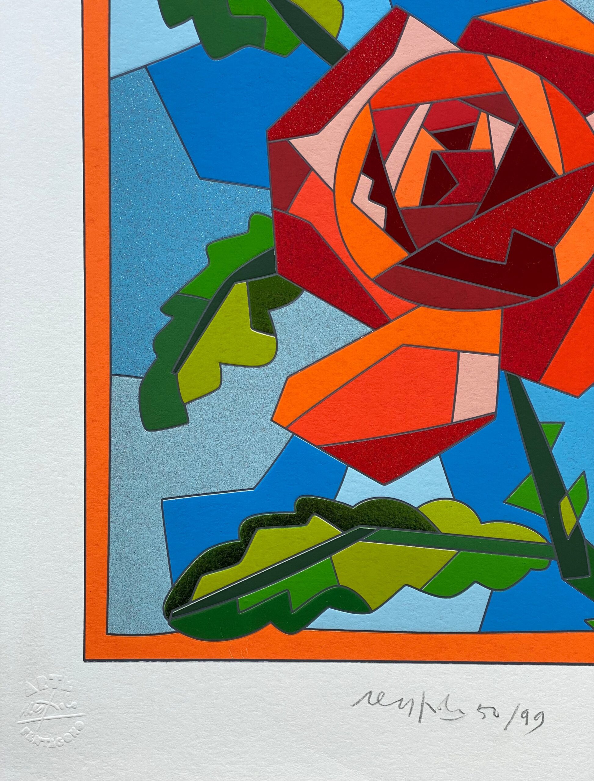 Scopri l’incantevole opera del maestro Ugo Nespolo, un multiplo in edizione limitata che cattura l’essenza della sua inconfondibile tecnica. Questa Serigrafia, sapientemente realizzata su Carta, si distingue per le sue dimensioni di 50×50 cm. Ogni pezzo è il frutto di un meticoloso processo artigianale: 46 passaggi di colore eseguiti interamente a mano, arricchiti da interventi in carborundum, floccaggi, foglia oro e un prezioso passaggio calcografico a secco. Un’opportunità unica per arricchire la tua collezione con un esemplare numerato e firmato, completo di certificato di autenticità, che testimonia l’eleganza e la maestria di Nespolo.