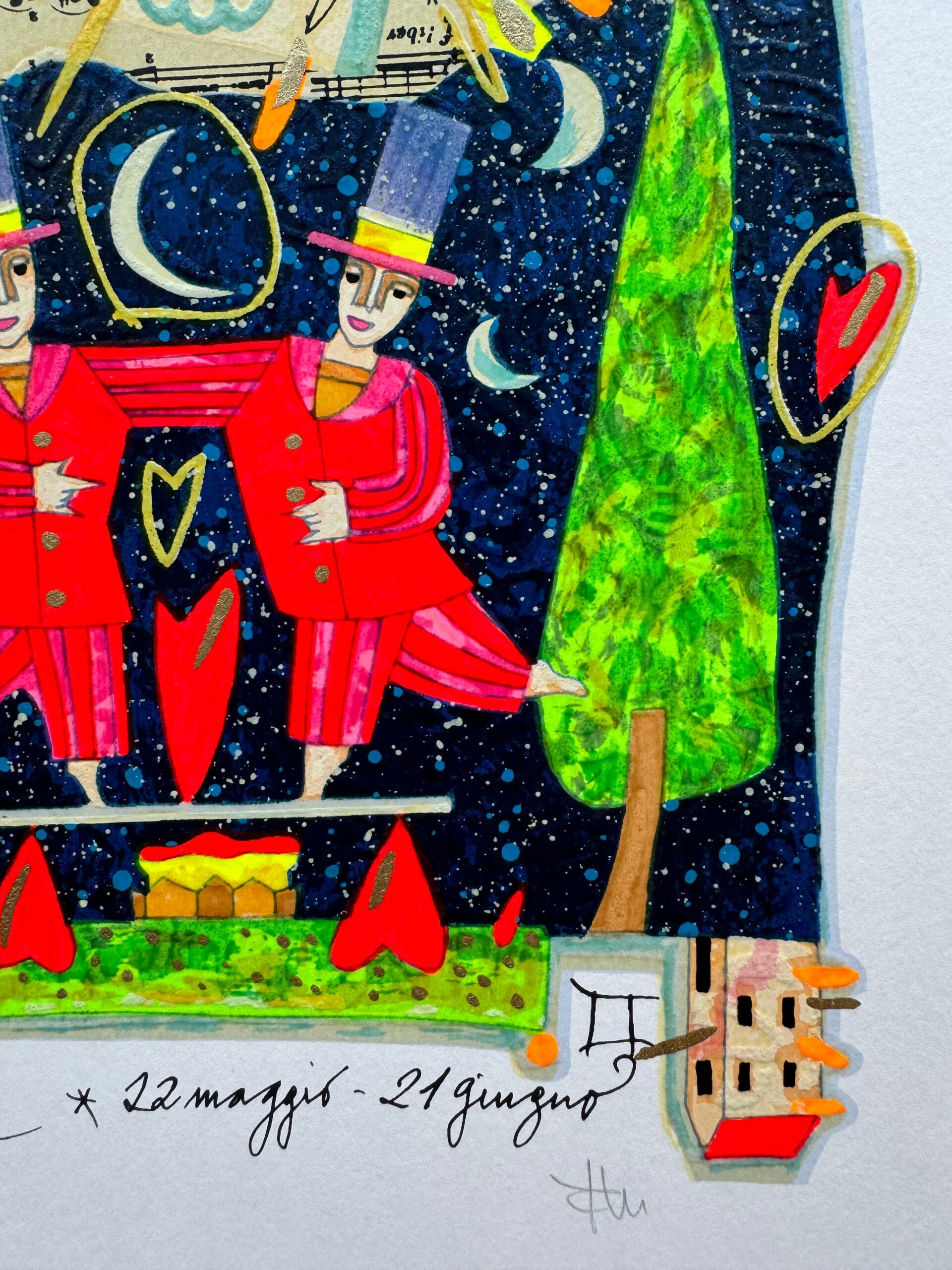 Questa serigrafia polimaterica, parte della storica cartella dei “Segni Zodiacali”, si distingue per la ricchezza di dettagli: foglia oro, foglia argento, glitter e metalli ne arricchiscono la superficie, creando un’esperienza visiva e tattile unica. Un vero e proprio multiplo in edizione limitata, perfetto per collezionisti e amanti dell’arte che cercano opere con un’anima.