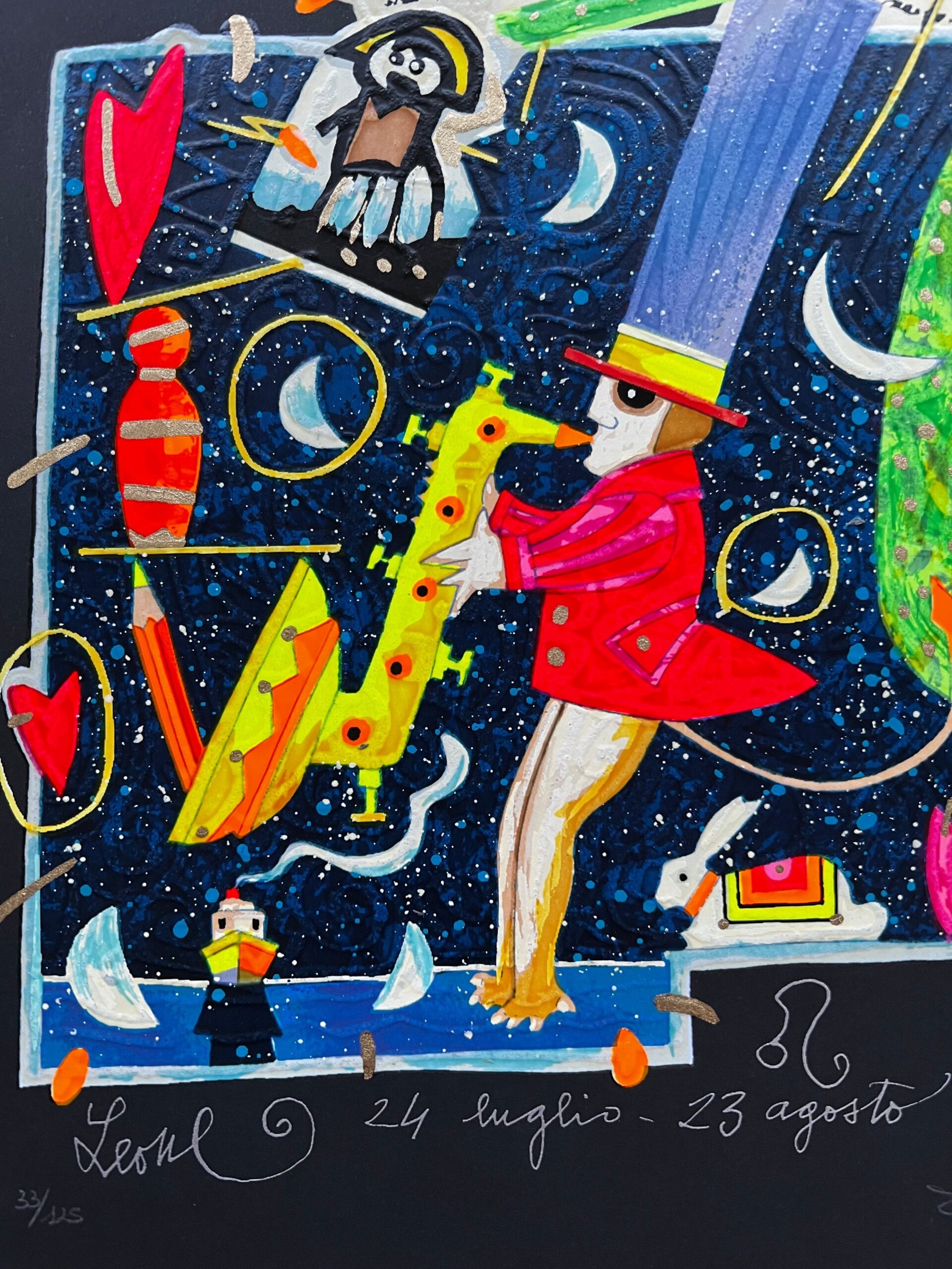 Questa Serigrafia polimaterica, facente parte della storica cartella dei “Segni Zodiacali”, è un esempio magnifico della sua arte. Impreziosita da dettagli raffinati come foglia oro, foglia argento, glitter e metalli, offre un’esperienza visiva ricca e coinvolgente. Le opere di Musante sono ampiamente riconosciute e richieste sia da privati che da istituzioni, garantendo quotazioni stabili e un valore artistico duraturo.