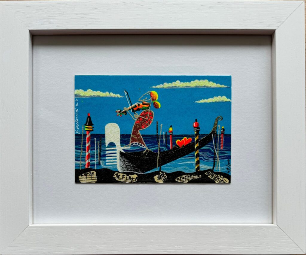 Realizzata con la tecnica della serigrafia polimaterica su pregiata carta tedesca, quest’opera presenta oltre 40 passaggi di colore, interamente ritoccati a mano dall’artista, rendendo ogni pezzo unico.