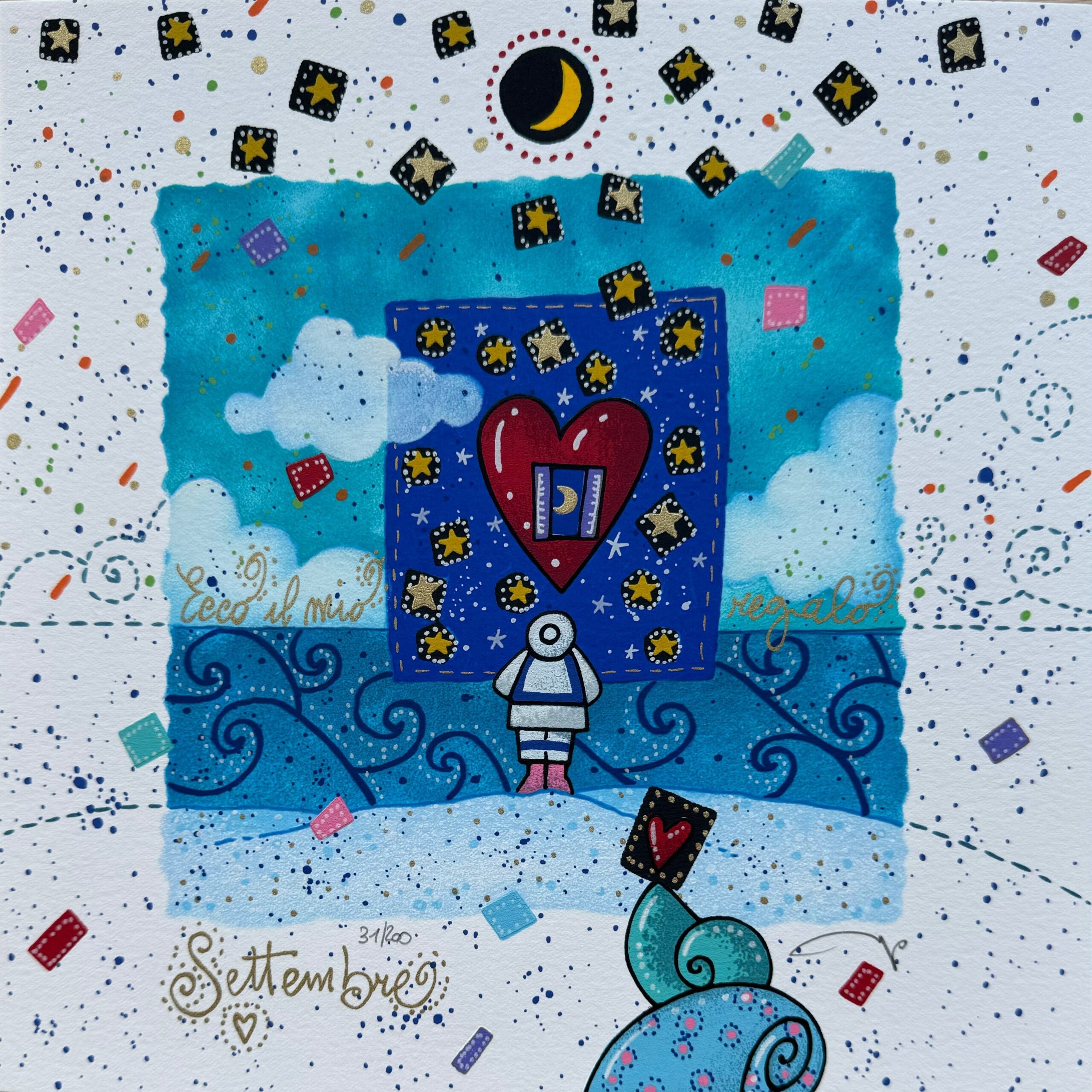 Scopri questa affascinante serigrafia polimaterica di Andrea Agostini, un’opera d’arte creata su carta con dimensioni di 25×25 cm. Facente parte della nuova suggestiva cartella “Segui la rotta del cuore”, questa creazione è un multiplo in edizione limitata che cattura l’essenza dell’artista.