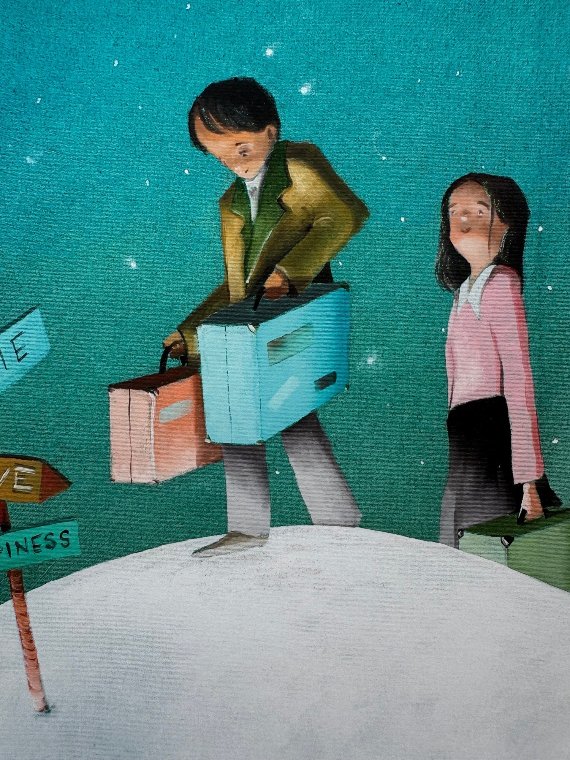 Scopri l’opera di Diego Santini, un esempio sublime di Fine Art Giclée che cattura l’essenza di atmosfere vaghe, personaggi sognanti e un’ironia sottile, tratti distintivi dell’artista.