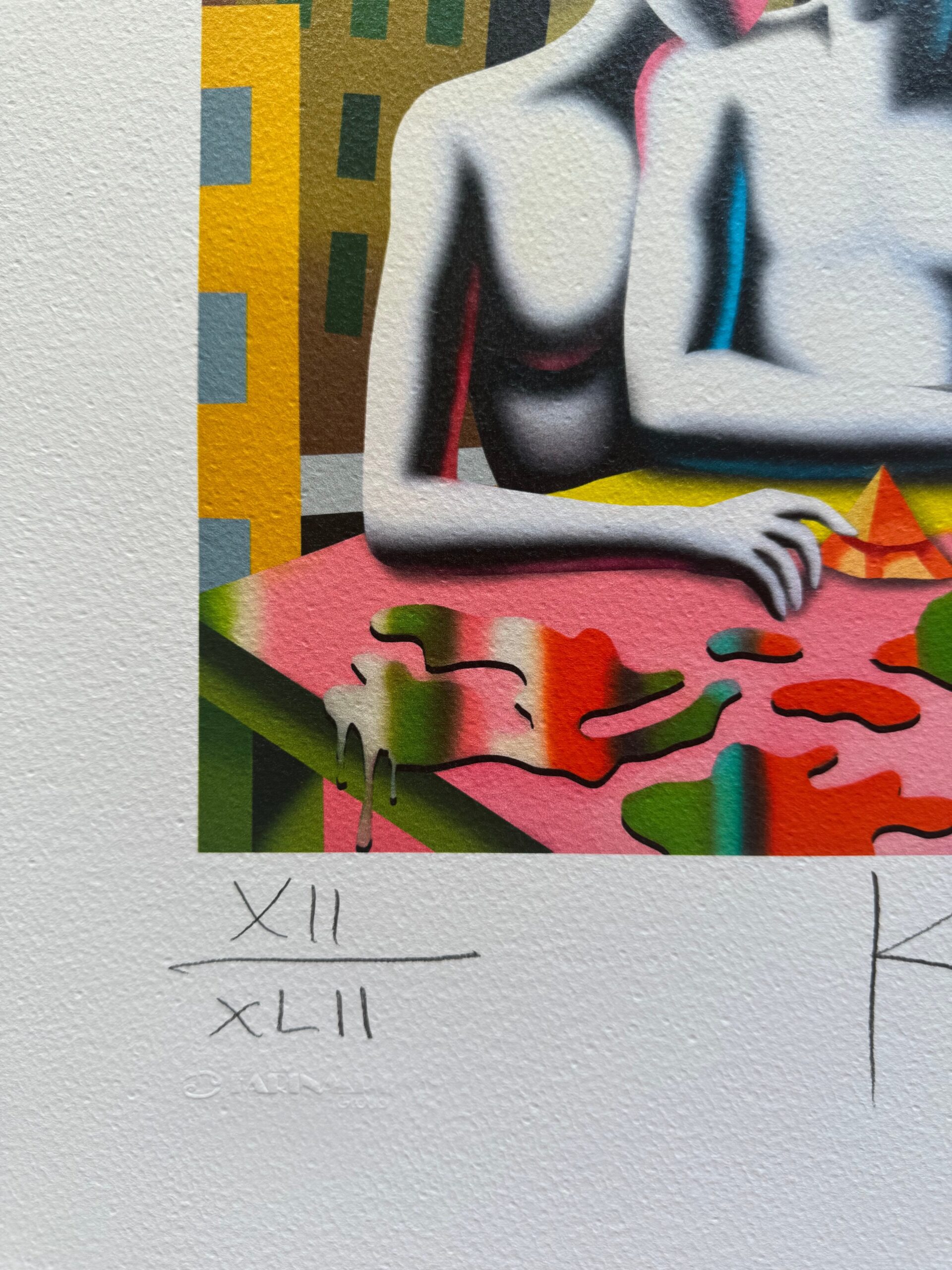 Scopri questa affascinante opera su carta del maestro Mark Kostabi, una serigrafia che incanta con la sua composizione.